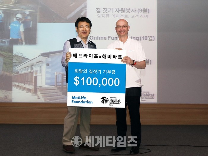 이를 위해 메트라이프재단은 집 건축 비용 10만불(한화 약 1억1,200만원)을 한국해비타트에 기부하기로 하고, 지난 25일 진행된 메트라이프생명 2분기 타운홀 미팅에서 ‘희망의 집짓기 기금 전달식’을 진행했다.