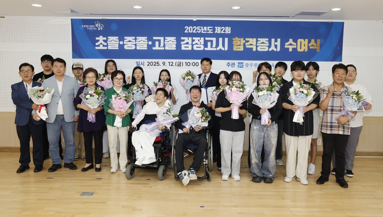 [광주 세계타임즈=손권일 기자] 광주시교육청(교육감 이정선)은 12일 본청 특수교육지원센터에서 ‘2025년 제2회 검정고시 합격증서 수여식’을 개최했다.