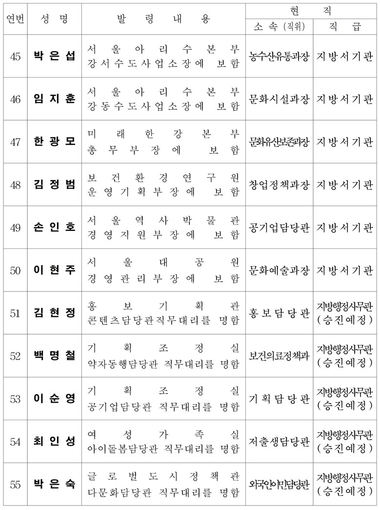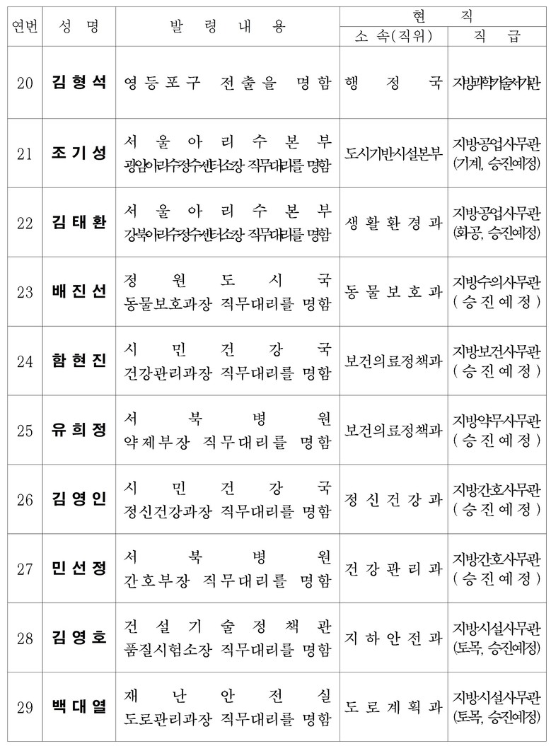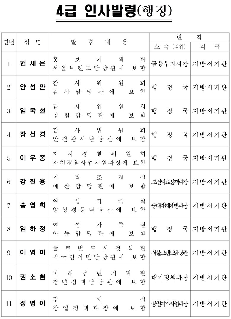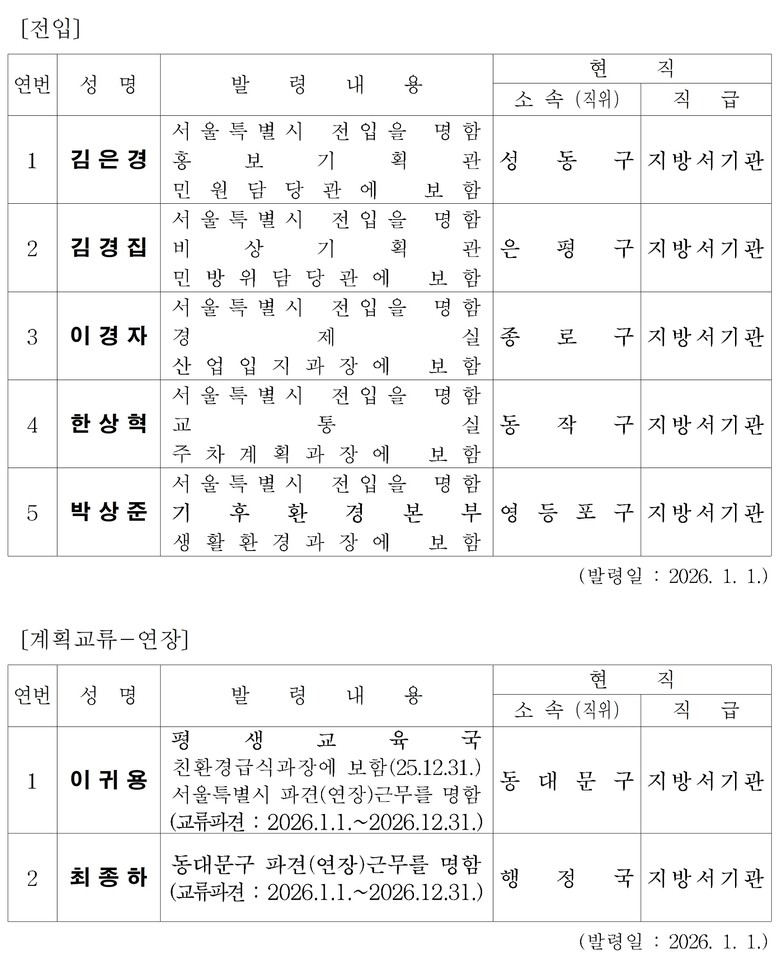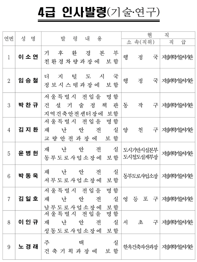 [인사] 서울특별시, ’26년 상반기 4급 이상 간부 전보 시행