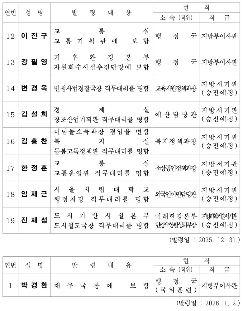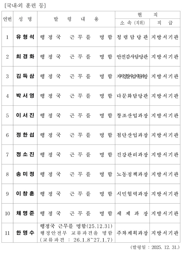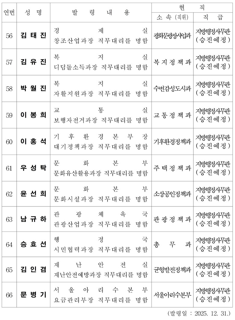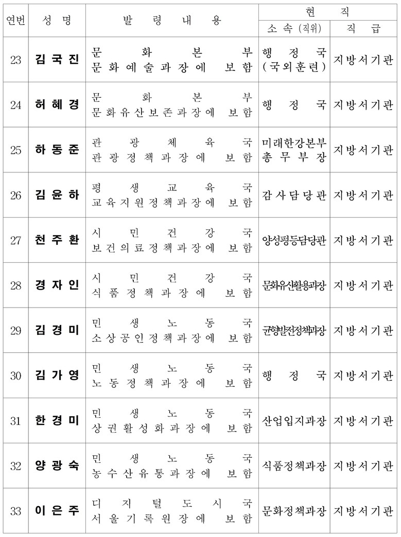 [인사] 서울특별시, ’26년 상반기 4급 이상 간부 전보 시행