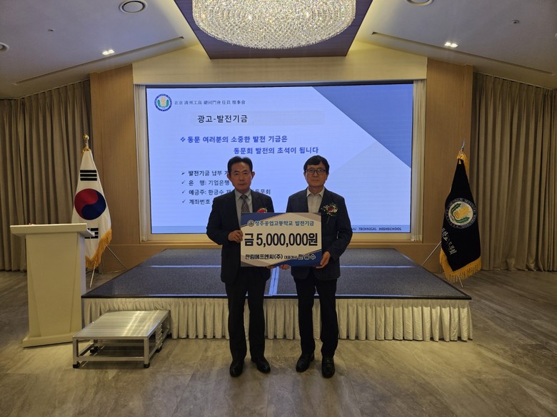 이번 기탁식에서 한긍수 대표이사는 “청주공고 후배들의 기술력 향상에 조금이나마 도움이 되길 바라며 장학금을 전달한다.”고 말했다.