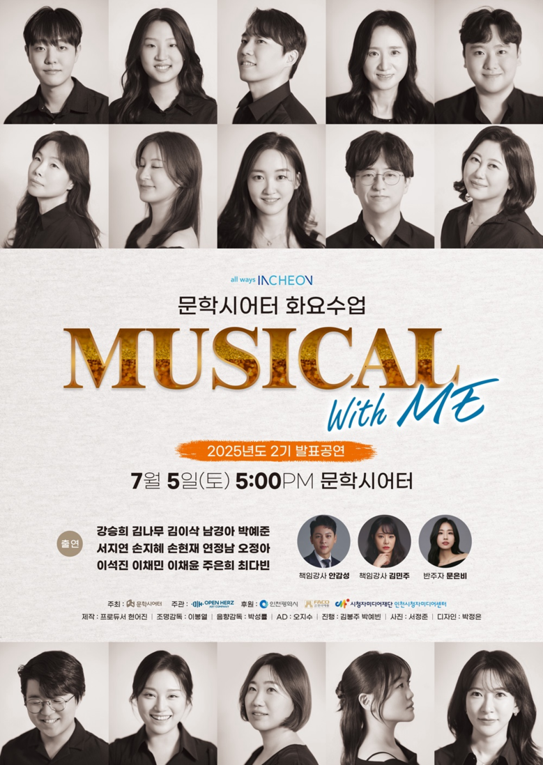 - 간호사부터 프리랜서까지, 다양한 삶을 예술로 풀어낸 시민참여형 문화 프로그램 - [인천 세계타임즈=심하린 기자] 인천광역시(시장 유정복)는 오는 7월 5일 문학시어터에서 시민참여형 뮤지컬 체험 프로그램 ‘뮤지컬 위드미’ 2기의 갈라쇼를 개최한다고 밝혔다.