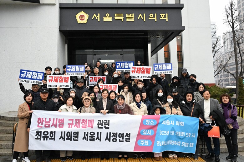 최유희 의원은 “한남시범아파트 문제는 주민이 만든 문제가 아니라 서울시 책임에서 출발한 사안”이라며, “그 부담을 다시 규제로 주민에게 떠넘기는 행정은 더 이상 정당화될 수 없다”고 밝혔다. 이어 “서울시는 공원용도 해제와 자연경관지구 규제 합리화를 통해 책임 있는 결단을 내려야 하며, 주민의 주거권 회복을 위해 끝까지 문제 해결에 나서겠다”고 강조했다.