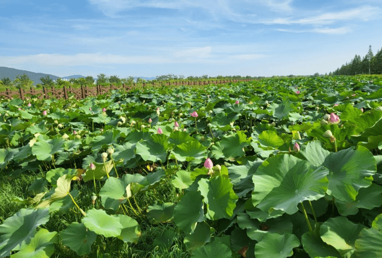 맥도생태공원 내 겨울 철새들의 서식처로 사랑받고 있는 ’하중도 습지‘에는 대규모 연꽃단지가 조성돼 있다. 단지 내 조성된 보행데크를 이용하면 더 가까이에서 연꽃을 관람할 수 있다.