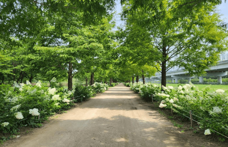 우선, 화명생태공원에 가면 약 1.2km 양방향으로 새하얗게 피어난 목수국을 동원진교(대천천) 건너 메타세쿼이아길에서 만나볼 수 있으며, 공원 내 탐방로 주변에서는 코스모스, 백일홍 등 계절을 대표하는 형형색색의 꽃들을 볼 수 있다.