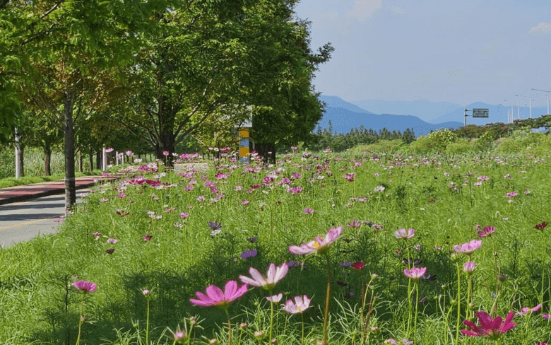 | ▲ 삼락생태공원 내 도로변 코스모스 전경 |