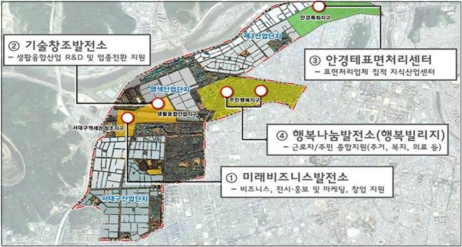 대구시에서는 서대구·염색·제3산업단지 및 주변지역 일대에 산업지원 앵커시설(미래비즈니스발전소, 기술창조발전소, 안경테표면처리센터), 주민 및 근로자 복지시설(행복나눔발전소), 정주여건 개선시설(행복빌리지) 건립을 추진하고 있다.