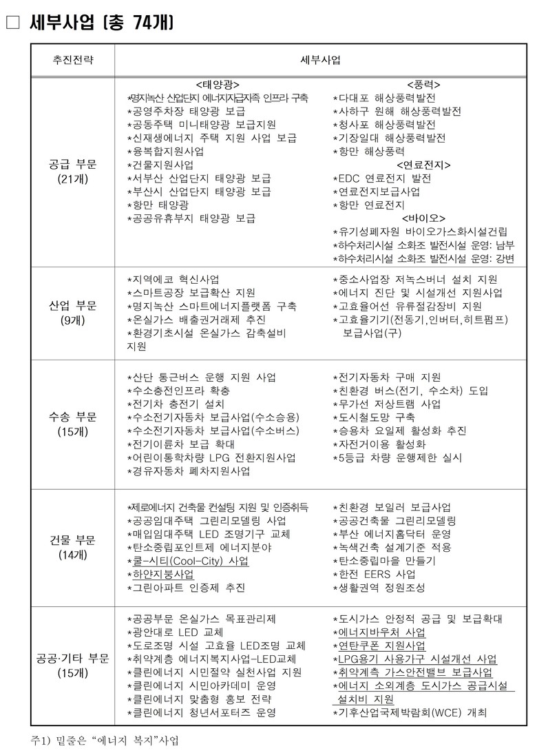 * 수요관리부문(53개) 사업: 산업부문(9개), 수송부문(15개), 건물부문(14개), 공공기타부문(15개)
