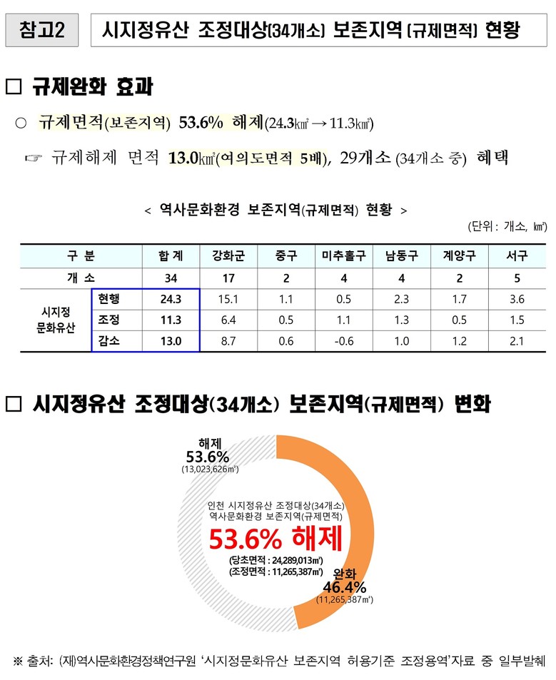 이로써 시지정문화유산 34개소 중 29개소의 보존지역 면적이 대폭 줄어들며, 총 13.0㎢가 보존지역에서 해제됐다. 이는 여의도 면적의 약 5배에 해당한다.
