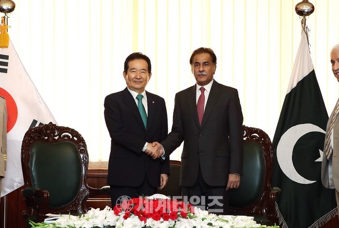 [세계타임즈 이채봉 기자]파키스탄을 공식 방문 중인 정세균 국회의장은 현지시간 8월 7일(월) 오전 사다르 아야즈 사디크(Sardar Ayaz Sadiq) 하원의장을 만나 양국 관계 발전방안을 논의했다.