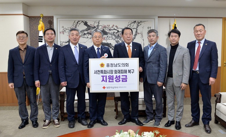 [충남 세계타임즈=백택기 기자] 충남도의회(의장 조길연)는 최근 서천특화시장 화재 복구와 피해 상인들에게 위로의 마음을 전달하고자 대한적십자사 충남지사에 성금을 기탁했다.