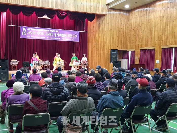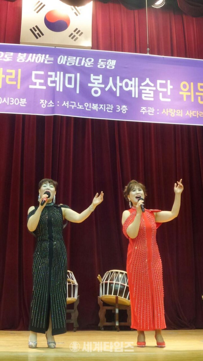 [대전=세계타임즈 이장성 기자] 다양한 봉사를 하고 있는 SNS 6천명 봉사단체 사랑의 사다리 밴드(리더 이정제)의 도레미봉사예술단(단장 안경헌)은 3일 오전10시부터 서구노인복지관에서 100여명의 어르신들께 위문공연봉사로 사회적효행을 실천하였다