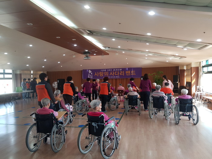 [대전=세계타임즈 이장성 기자] 대전시 SNS 봉사단체 사랑의 사다리 밴드(리더 이정제)는 21일 오후14시, 대덕구 대화동에 위치한 다비다의 집(원장 윤진순)에서 요양원 어르신들께 위문공연 봉사로 사회적 효행을 실천하였다.