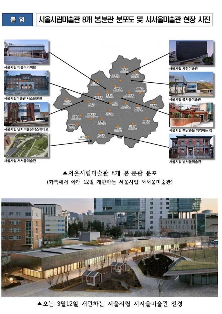 또한, △ ‘금천구민 문화향유 기회 확대’로서 조만간 있을 시향과 MOU 체결 등의 노력이 계속되어야 할 것을 강조했으며, 마지막으로, △‘지역예술인 성장 기반 마련’으로서, 서서울미술관이 단순히 전시공간을 넘어, 지역주민이 계속해서 강조한 만큼 그동안 소외되었던 서남권 일대 금천구와 함께 성장할 수 있는 미술관이 될 수 있도록 신경써줄 것을 당부했다.
