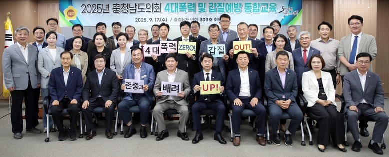 [충남 세계타임즈=이현진 기자] 충남도의회(의장 홍성현)는 지난 17일 도의회 전 의원 및 공무원을 대상으로 4대폭력 예방교육을 실시했다.