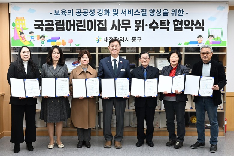 [중구 세계타임즈=이채봉 기자] 대전 중구는 지난 9일 보육의 공공성 강화 및 서비스질 향상을 위하여 국공립어린이집 위·수탁 협약을 체결했다고 밝혔다.