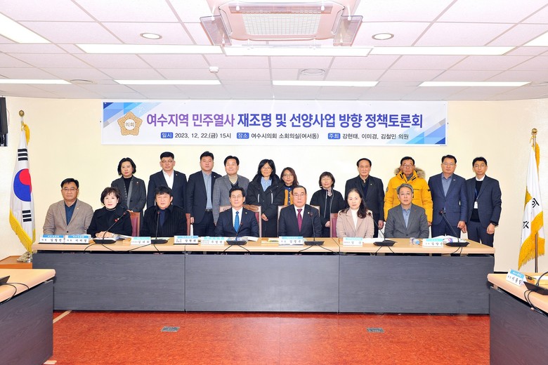 [여수시 세계타임즈=우덕현 기자] 여수시의회(의장 김영규)는 22일 의회 소회의실에서 ‘여수지역 민주열사 재조명 및 선양사업 방향 정책토론회’를 개최했다.