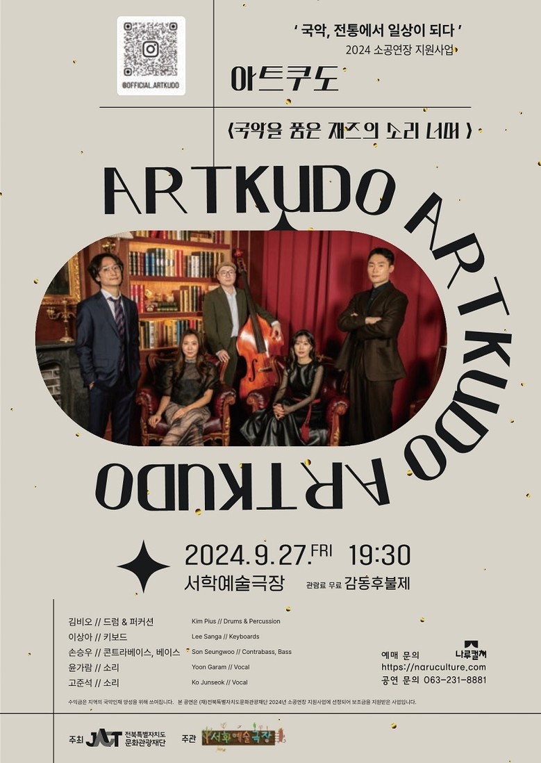 9월 27일에는 국악과 재즈를 잇는 그룹 ‘아트쿠도’가 ‘국악을 품은 재즈의 소리 너머’를 선보인다. 사철가 등 총 9곡의 전통음악을 재즈로 풀어낸다.