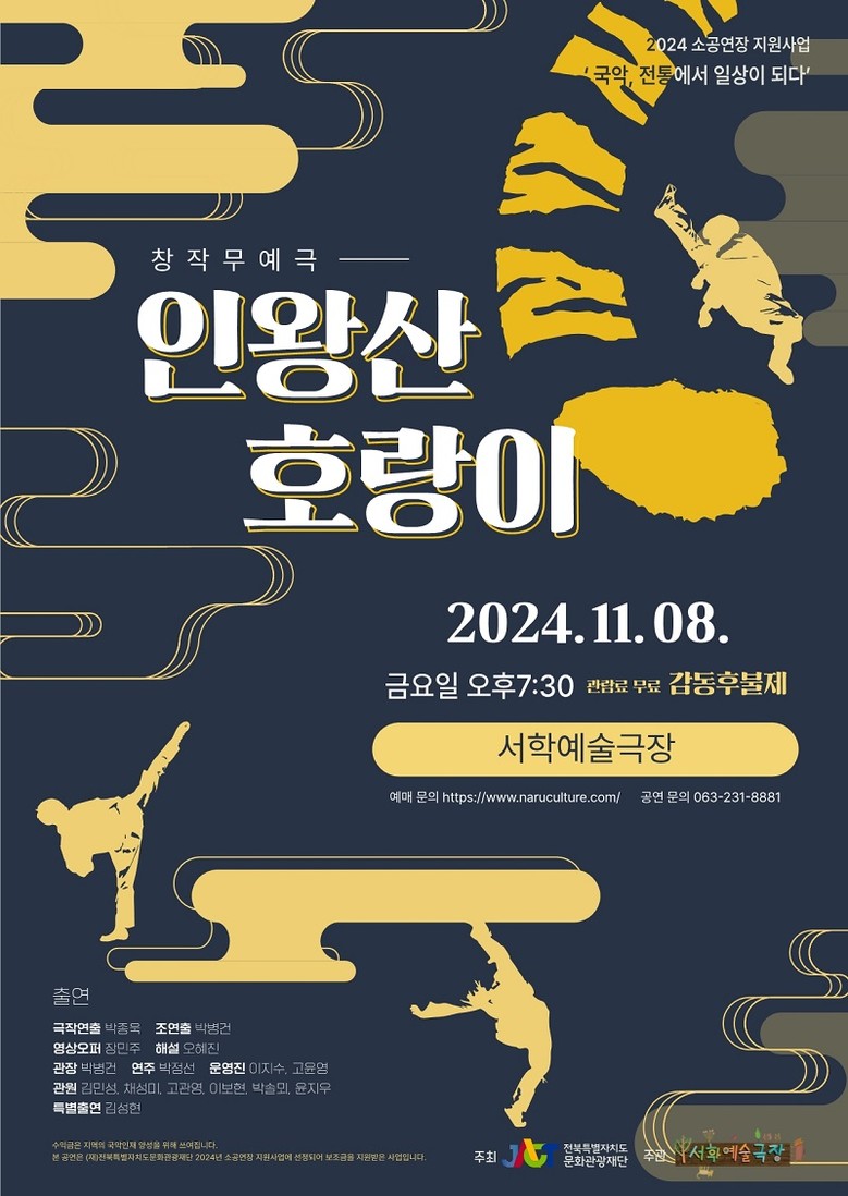 11월 8일에는 택견을 기반으로 활동하는 전통문화 공연예술 그룹 ‘발광엔터테인먼트’가 직접 창작한 무예극 <인왕산 호랑이>가 진행된다. 한순간도 눈을 뗄 수 없는 전통 액션 연희의 향연이 기대된다.