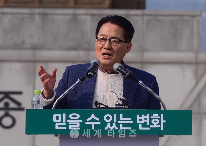국민의당 박지원 대표가 19일 서울 광화문광장에서 손학규 예비후보의 대선 출마 선언 후 발언하고 있다. 2017.03.19