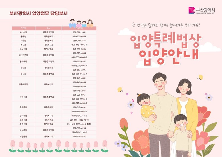 그간 민간 입양기관이 담당하던 입양업무를 오는 7월 19일부터 정부가 수행하게 돼, 입양체계가 민간 중심에서 국가 주도의 공적 입양체계로 변경된다. 이에 따라, 현재 민간 입양기관에서 담당하는 입양 관련 업무 전반을 각 구·군에서 담당하게 된다.