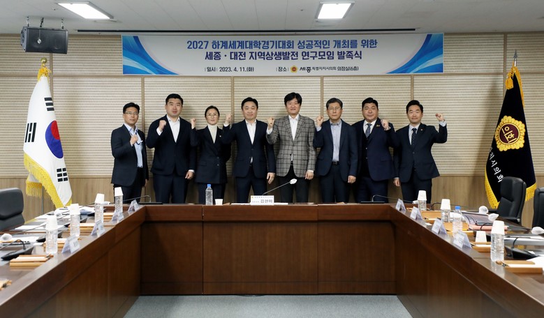 [세종 세계타임즈=이채봉 기자] 세종특별자치시의회(의장 상병헌)는 11일 ‘2027 하계세계대학경기대회의 성공적인 개최를 위한 세종·대전 지역상생발전 연구모임(대표의원 김현미)’을 발족하고 첫 번째 간담회 자리를 가졌다.
