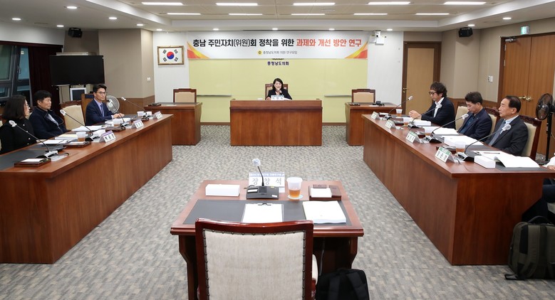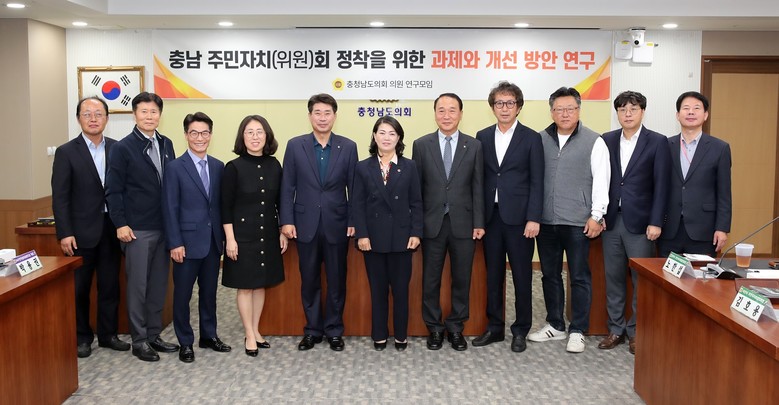 [충남 세계타임즈=백택기 기자] 충남도의회 ‘주민자치(위원)회 정착을 위한 과제와 개선 방안에 관한 연구모임’(대표 이현숙)은 1일 행정문화위원회 회의실에서 제4차 모임 및 연구용역 최종보고회를 개최하여 충남 주민자치회 활성화를 위한 정책 방향을 구체화하고 지원 방안을 논의했다.
