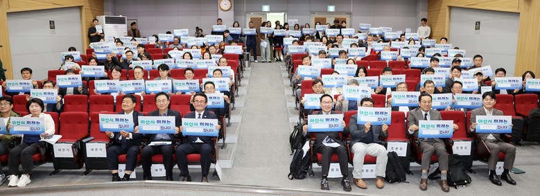 현장에서는 시민들이 직접 참여해 ‘아산시의 미래는 ○○○입니다’라는 질문에 각자의 답을 적는 시간도 마련됐으며, 시민들은 다양한 단어를 통해 아산의 미래에 대한 기대를 표현했다.