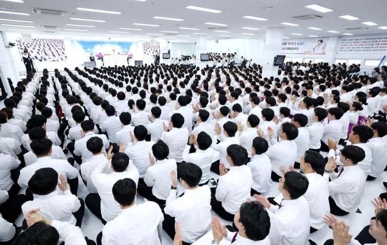 25일 전북특별자치도 익산시에 신천지예수교 증거장막성전 이만희 총회장이 방문해 성도들이 환영하고 있다.