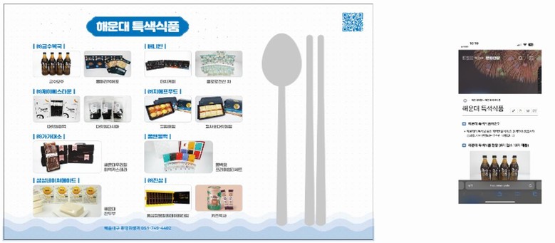 | ▲ 해운대구(식당 이용객 대상 밥상머리 틈새 홍보) - 테이블세팅지 테마구성(QR코드 활용) |