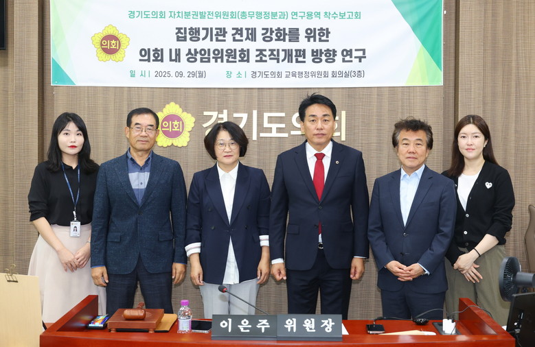 [경기도 세계타임즈=송민수 기자] 경기도의회 자치분권발전위원회 총무행정분과(위원장 이은주)는 9월 29일(월) 도의회 교육행정위원회 회의실에서 「집행기관 견제 강화를 위한 의회 내 상임위원회 조직개편 방향 연구」 착수보고회를 개최했다. 이번 연구는 향후 의원 정수 확대에 따라 예상되는 의정 환경 변화에 대응하고, 특히 교육분야 상임위 증설의 필요성을 검토하기 위해 추진됐다.