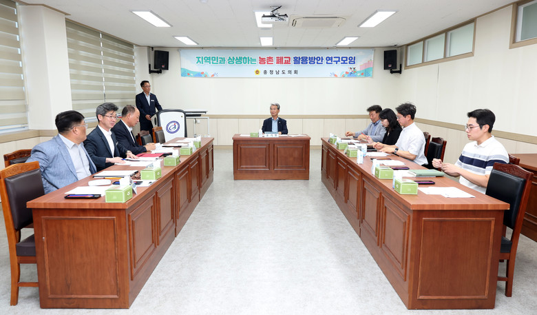 충남도의회 ‘지역민과 상생하는 농촌 폐교 활용방안 연구모임’(대표 윤기형)은 9일 논산계룡교육지원청에서 발족식과 함께 제1차 회의를 개최하고, 농촌 폐교의 효율적 활용 방안에 대해 논의했다.