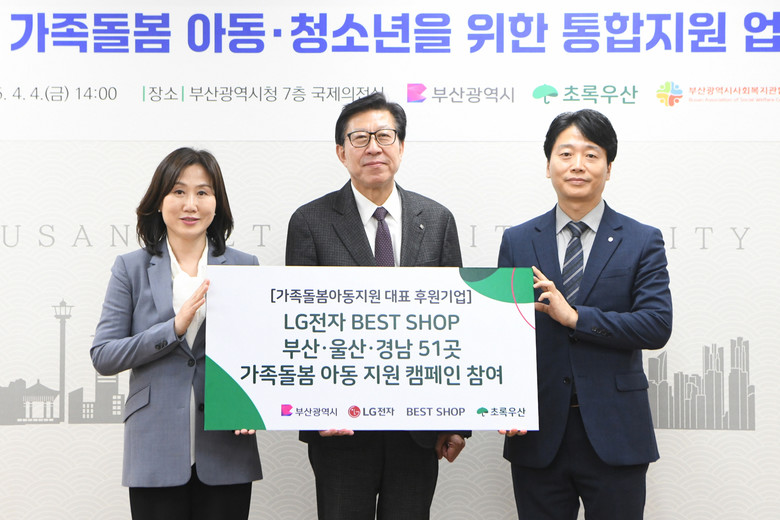 아울러, 이번 협약사업의 대표 후원기관으로 엘지(LG)전자 베스트샵 부울경 지점이 참여해 가족돌봄 아동·청소년을 위한 후원 캠페인을 진행한다.