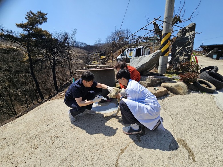 [경북 세계타임즈=한윤석 기자] 지난 3월 22일 의성에서 시작된 초대형 산불로 인해 인명뿐 아니라 동물의 피해가 속출한 가운데 경북도와 경북수의사회가 긴급히 가동한 무료 이동동물병원, 동물보호단체인 루시의 친구들*, 경북대 수의과대학, 국경없는 수의사회, 넬동물의료센터 등이 함께 구조와 치료에 적극 나섰다.