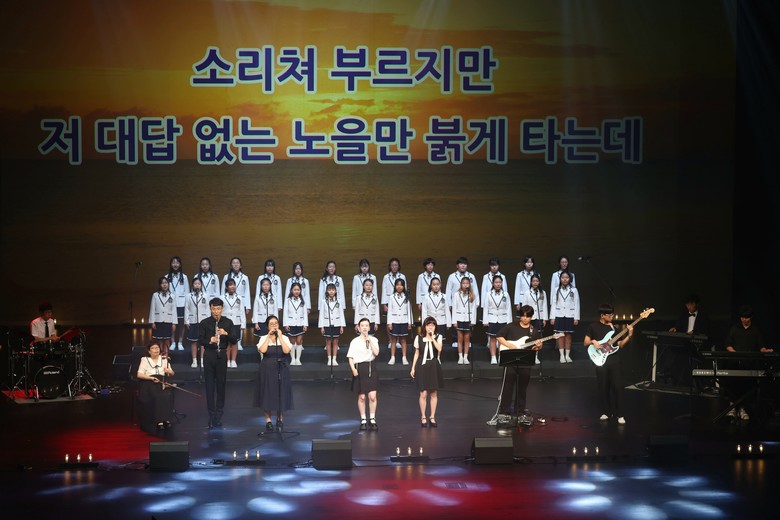 | ▲ 30일에 세종예술의전당에서 열린 어울림 공연에서 ‘붉은 노을’을 어울림 예술단과 세종예술고등학교, 연세엔젤스 합창단이 함께 꾸민 무대 |