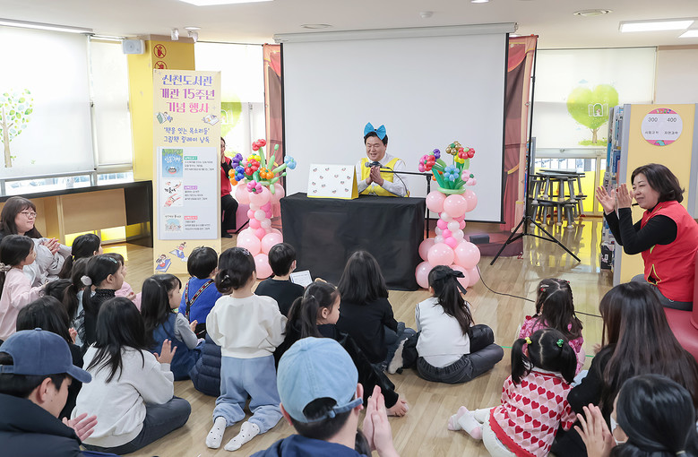 이날 행사는 유아동과 어린이를 동반한 가족 80여 명이 참여한 가운데 오전 10시부터 2시간가량 진행됐으며, 지난 15년간 지역사회 지식ㆍ문화 공간으로 자리매김해 온 신천도서관의 발자취를 시민과 함께 되돌아보고 축하하는 자리로 마련됐다.
