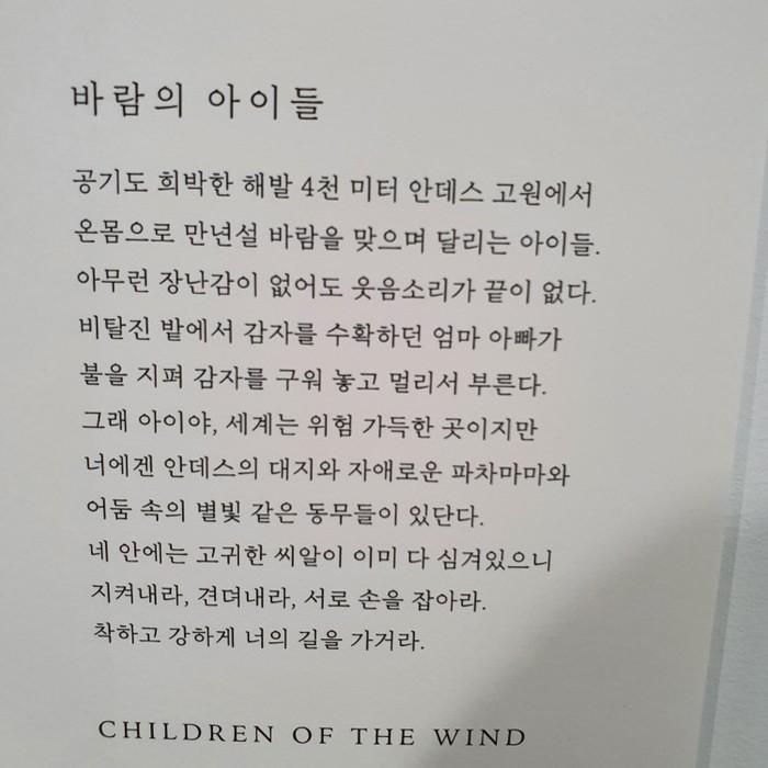 해맑은 아이들의 미소를 보면 눈물이 날 때가 있다. 미안함에, 때묻은 손을 잡아야만 하는 아이들의 고사리 같은 손바닥이 아리다. 자연에서 온 아이들은 자연에서 뛰노는 게 좋다. 진정한 고상함은 자신을 속이지 않는 솔직함과 자연스러움에 있다. 고산지대를 뛰노는 아이들의 미소는 맑다. 맑다 못해 죄많은 삶이 송구스럽다.