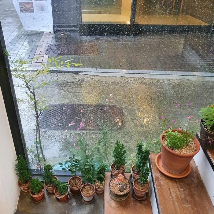 갈색의 화분들이 눈에 들었다. 카페는 온통 초록의 옷을 입었다. 자연의 색(色) 초록, 초록이라는 말은 참 좋다. 발음부터 '록'하고 맑은 소리가 난다. 뒤끝이 없다. 한 여름 장맛비에 씻겨 내리는 묵은 먼지들. 빗소리를 듣고 있으면 마음에 묵었던 죄(罪)들도 함께 씻기는 것만 같다.