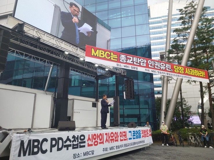 [세계타임즈 백진욱 기자] MBC PD수첩 방송저지 통일교 신도대책위원회(이하 신대위)가 8.30일에 방영한 MBC 피디수첩 왜곡보도에 대한 항의 집회 및 평화행진이 31일 서울 MBC상암동에서 열렸다. 집회의 내용은 아래와 같다.