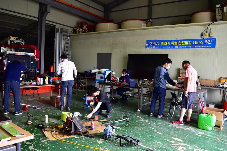 안전점검은 ▲시동·작동상태 점검 ▲ 커버, 작업대 등 안전장치 점검 ▲예취날 상태확인·교체 등을 지원한다.