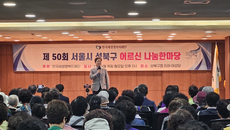 [세계타임즈]최성룡기자 = 한국새생명복지재단(이사장 송창익)은 2025년 6월 16일(월) 오후 2시, 서울시 성북구청 대강당에서 소외된 어르신들을 위한 문화 나눔 행사인 **‘어르신 나눔한마당’**을 성황리에 개최했다.