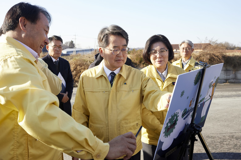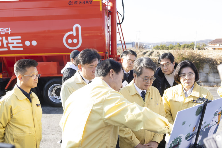 김 지사는 현장에서 터널식 소독조에서 진행되는 가축 방역 과정을 지켜본 후 관계자들을 격려하고 겨울철 동물방역에 최선을 다해줄 것을 당부했다.