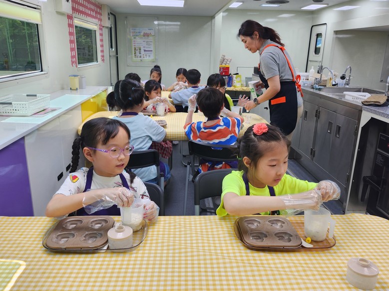 문애경(운정초, 교사)는 “아몬드 가루, 레몬즙, 우유 등 건강한 재료를 이용해 마들렌을 만들고, 튼튼 버스 조립을 하며 저당, 저염 관련 내용을 익힐 수 있도록 아이들 눈높이에 맞게 교육활동이 진행되어 만족합니다.”라고 말했다.