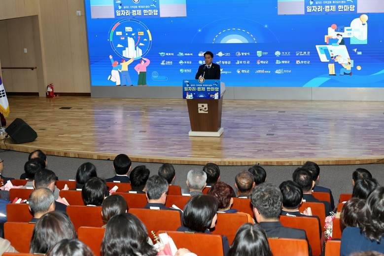 이날 일자리‧경제 한마당에는 김영록 지사와 시장‧군수, 기업 대표 등 100여 명이 참석한 가운데 팝페라공연, 일자리 정보망 영상 상영, 일자리 우수기업 인증패 수여, 우수 시‧군 표창 수여 순으로 진행됐다.