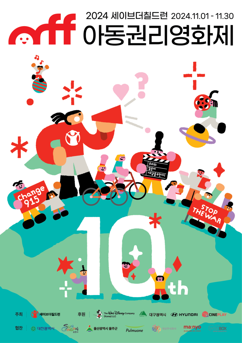 세이브더칠드런 아동권리영화제는 영화를 통해 아동 체벌 근절에 대한 사회적 공감대를 만들고자 2015년부터 시작됐다. 10주년을 맞이한 올해는 ‘우리의 질문이 세상을 구한다!’라는 주제로 지난 10년간 아동권리를 위해 던진 질문을 하나로 모으는 콘셉트다. 영화제 기간 홈페이지에서 온라인 전시를 진행하고, 11월 16일(토)부터 23일(토)까지 메가박스 성수에서 오프라인 전시가 진행된다. ‘2024 아동권리영화제’는 지난 5월부터 8월까지 단편영화 공모를 통해 본선 수상작 6편을 선정했다.