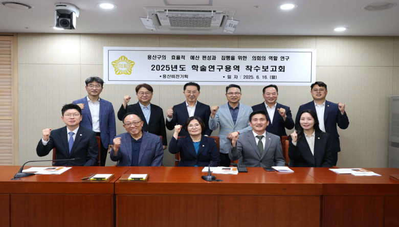 [용산구 세계타임즈=이장성 기자] 용산구의회(의장 김성철)는 6월 16일 용산구 의원이 참여하는 의원 연구단체 「용산비전기획」의 “용산구의 효율적 예산 편성과 집행을 위한 의회의 역할 연구용역” 착수보고회를 개최하고 본격적인 활동에 들어갔다.