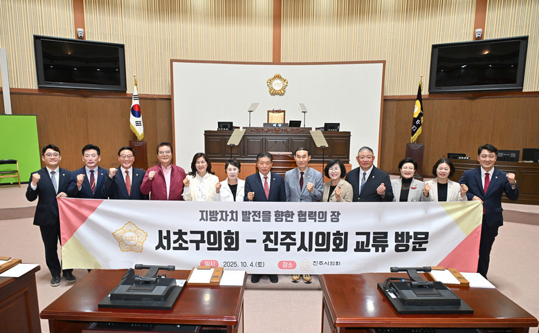 의장단은 이번 방문에서 백승홍 진주시의회 의장을 비롯한 시의원들과 간담회를 가졌다. 참석자들은 문화예술과 축제를 통한 지역 경쟁력 강화 방안에 대해 의견을 나눴다. 서초구의회는 주민 참여형 축제로 자리 잡은 ‘서리풀페스티벌’의 성공 사례를 공유하며, 주민이 함께 만드는 축제 문화의 확산 가능성을 공유했다.