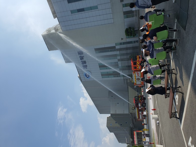 유해화학물질인 메틸 알코올 누출로 인한 화재 상황을 설정해 진행한 이 훈련은 자체 매뉴얼에 따라 ▲비상 상황 긴급전파 ▲소방대 초동 조치 ▲화재 진압 ▲인명구조 ▲사고 복구 등으로 구성됐다.