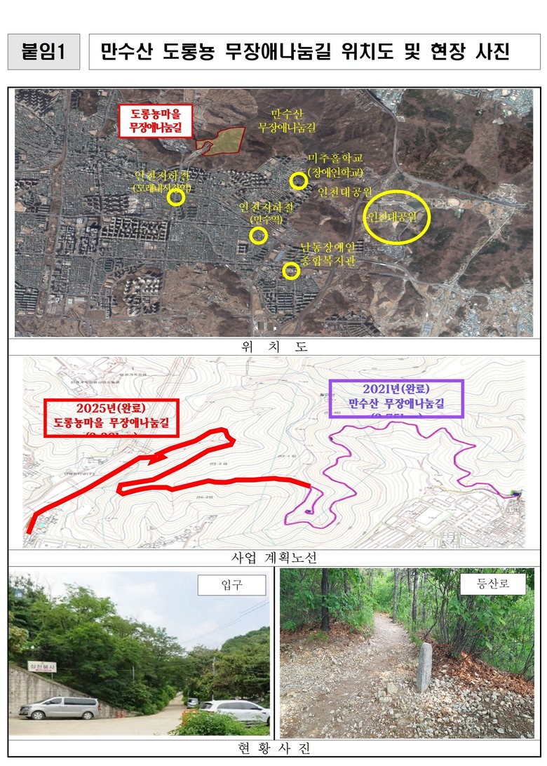 특히 인천시는 2025년 녹색자금 지원사업으로 추진된 ‘만수산 도롱뇽마을 무장애나눔길 조성사업’ 과정에서 남동구와 긴밀히 협력해 현장 모니터링부터 평가 심사까지 공동으로 수행하며 시·구 간 협업 역량을 입증했다.