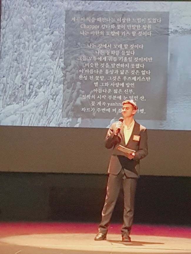 이날 시 낭송은 한국, 중국, 인도, 베트남, 프랑스, 키르기즈스탄, 나이지리아, 남아공, 노르웨이, 카지흐스탄, 브라질, 우즈베키스탄 등 18개 나라를 대표하는 자국어 시 낭송가들이 번역된 배경화면과 함께 무대를 빛냈다. 또 축하공연으로 중요무형문화재 제97호 최은정, 제5호 한기복의 소고춤과 장구 연주가 있었다. 한국의 멋을 시와 음악으로 알린 가치있는 글로벌 행사였다.